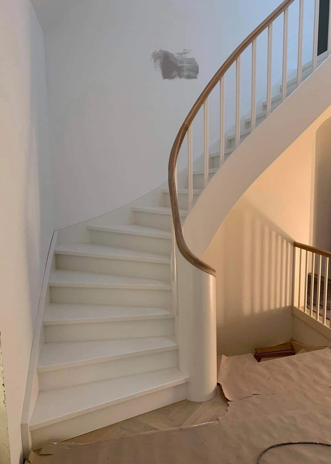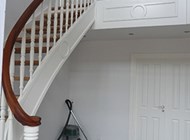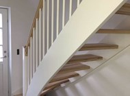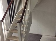 En kvartsvingstrappe sættes oftest i et hjørne og fylder som regl mindre end man regner med efter montering. Vi laver naturligvis altid trapperne efter de korrekte mål, så du får den perfekte trappe til dit hus.